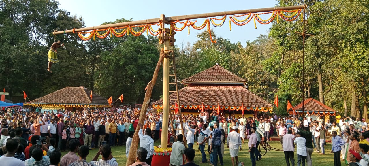 गुहागर, ता. 14 : तालुक्यातील नरवण येथील ग्रामदेवत श्री व्याघ्रांबरी देवीचा बगाडा उत्सव देवीच्या मंदिर प्रांगणामध्ये उत्साहात पार पडला. यावेळी भक्तांच्या श्रध्देची परीक्षा घेणाऱ्या बगाडा सोहळ्यासाठी मुंबई, पुणे व राज्य भरातून आलेले पर्यटक तसेच भक्तांनी गर्दी केली होती. देवीचा बगाडा पाहण्यासाठी दरवर्षी हजारोंच्या संख्येने भाविक नरवण गावात दाखल होत असतात. त्यामुळे जत्रेचे स्वरूप प्राप्त होते.  Bagada of Vyaghrambri Devi at Naravan