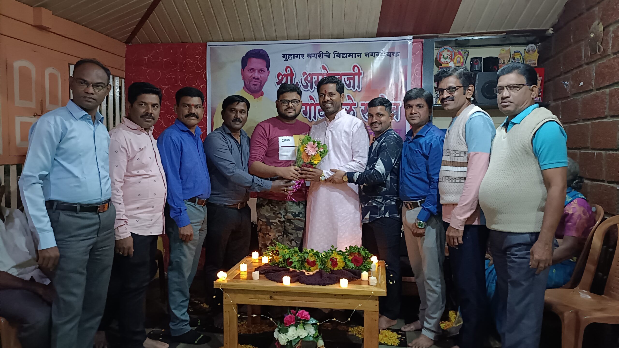 गुहागर, ता.14 : गुहागर नगरपंचायतीचे प्रभाग 16 चे सक्रिय नगरसेवक श्री. अमोल गोयथळे यांच्या वाढदिवसानिमित्त प्रभाग 15, 16 व 17 मधील शासकीय व निमशासकीय कर्मचारी यांचा सन्मानचिन्ह देऊन गौरव करण्यात आला. यावेळी श्री. गोयथळे यांना शुभेच्छा देण्यासाठी विविध स्तरावरील लोक उपस्थित होते. Birthday felicitation for retired employees