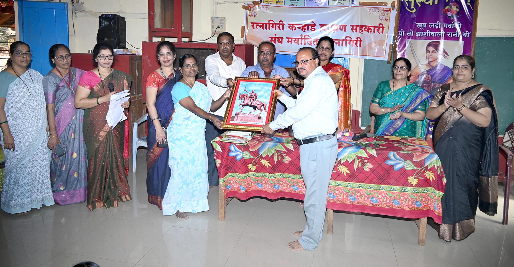 रत्नागिरी, ता. 05 : मेरी झॉंसी नहीं दूंगी असे सांगता ब्रिटीशांशी झुंजार लढा देणाऱ्या राणी लक्ष्मीबाईंच्या जयंतीचे औचित्य साधून रत्नागिरी कऱ्हाडे ब्राह्मण सहकारी संघातर्फे केळ्ये शाळा क्र. १ येथे विविध स्पर्धा घेण्यात आल्या. तसेच शाळेला अडीच हजार रुपयांची पुस्तके, अडीच हजार रुपयांची आर्थिक मदत देण्यात आली. राणी लक्ष्मीबाईंची प्रतिमा व चरित्र पुस्तकांचे वितरण करण्यात आले. Competition on Rani Lakshmibai Jayanti