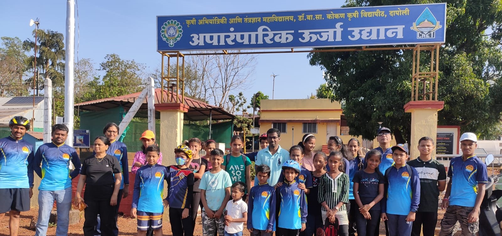 अपारंपारिक ऊर्जा उद्यान येथे डॉ अतुल मोहोड, नितीन पालटे आणि सहकारी यांनी तेथील आधुनिक तंत्रज्ञान, उपकरणे, नवीन प्रयोग बद्दल माहिती सांगितली. तसेच सौर जल शुद्धीकरण यंत्र, सौर उष्ण जल संयंत्र, सुटकेस सौर पेटी चुल, सुधारीत चुली, सौर कंदिल, उष्णता पुनर्प्राप्ती प्रणालीसह सुधारीत कुक स्टोव्ह, सौरचलित क्रिम विभाजक, भात पाखडणी सयंत्र, बायोगॅस सयंत्र, सौर टनेल वाळवणी यंत्र, कृषी अवशेष जैव वायु सयंत्र, जैव अवशेष ब्रीक्वेटिंग यंत्र, शेत तळे व ग्रीन हाऊस इत्यादी यंत्र दाखवली. Cycle tour in Dapoli on Vasundhara day