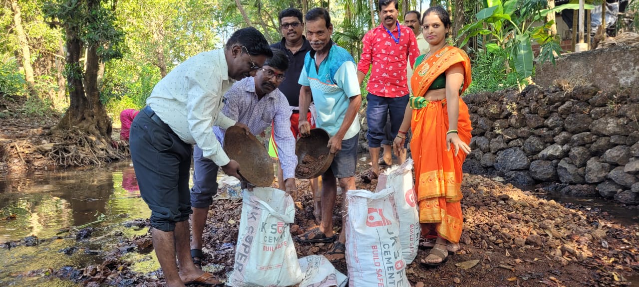पंचायत समिती गुहागरच्या महात्मा फुले जलभूमी संधारण अभियानांतर्गत मिशन बंधारे मोहीम २०२२-२३ अंतर्गत ग्रामपंचायत वेळंब येथील कातळवाडी पऱ्यावर वनराई बंधारा बांधण्यात आला. यावेळी सरपंच समिक्षा बारगोडे यांनी मत व्यक्त केले. या बंधाऱ्याचा उपयोग कातळ वाडीतील नळ पाणीपुरवठा योजनेच्या विहिरीसाठी तसेच वाडीतील नारळ सुपारीच्या बागायतीसाठी होणार असल्याचेही त्यांनी सांगितले. Dams from labordonation at Welamb