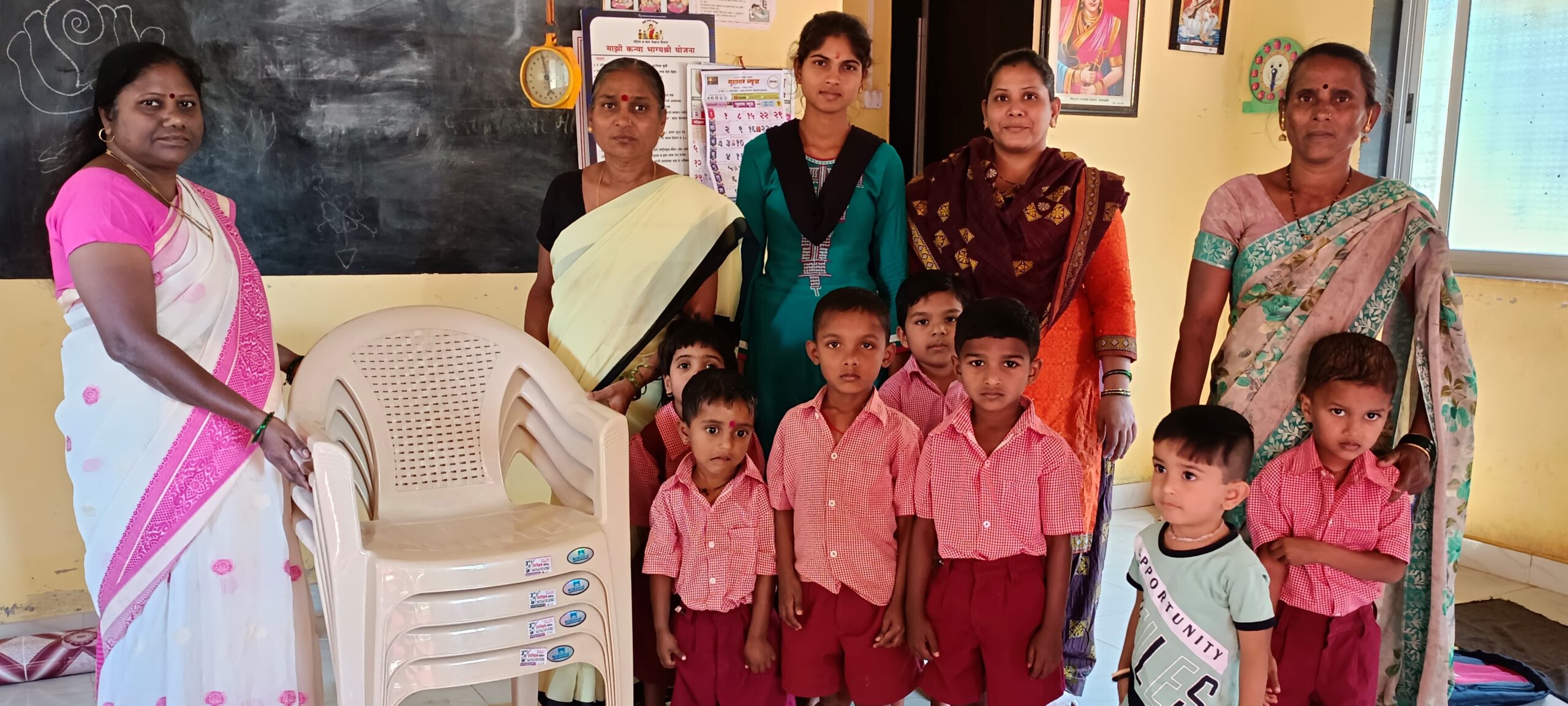 या खुर्च्यांचे वितरण प्रभाग १५ च्या नगरसेविका तथा आरोग्य व स्वच्छता समिती सभापती सौ. स्नेहल सुनील रेवाळे यांच्या हस्ते करण्यात आले. यावेळी अंगणवाडी मदतनीस श्रीमती दक्षता मोरे, विद्या गुरव, भारती चव्हाण, दर्शना मालप व अंगणवाडीतील मुले उपस्थित होती. Distribution of chairs to Janglewadi Anganwadi