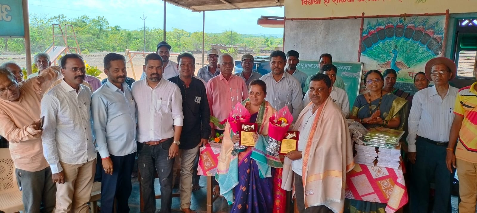 तवसाळ तांबडवाडीमधील बुरटे सर व बुरटे मॅडम यांची अन्य शाळेमध्ये बदली झाली आहे. निर्मला इलेव्हन संघातील अनेक खेळाडुंना बुरटे दाम्पत्यांने शिकवले आहे. त्यामुळे शैक्षणिक साहित्य वाटप कार्यक्रमामध्ये खेळाडुंनी बुरटे दाम्पत्याच सत्कार केला. त्याच्या पुढील कारकीर्दीसाठी शुभेच्छा दिल्या. Distribution of educational material by Nirmala XI team