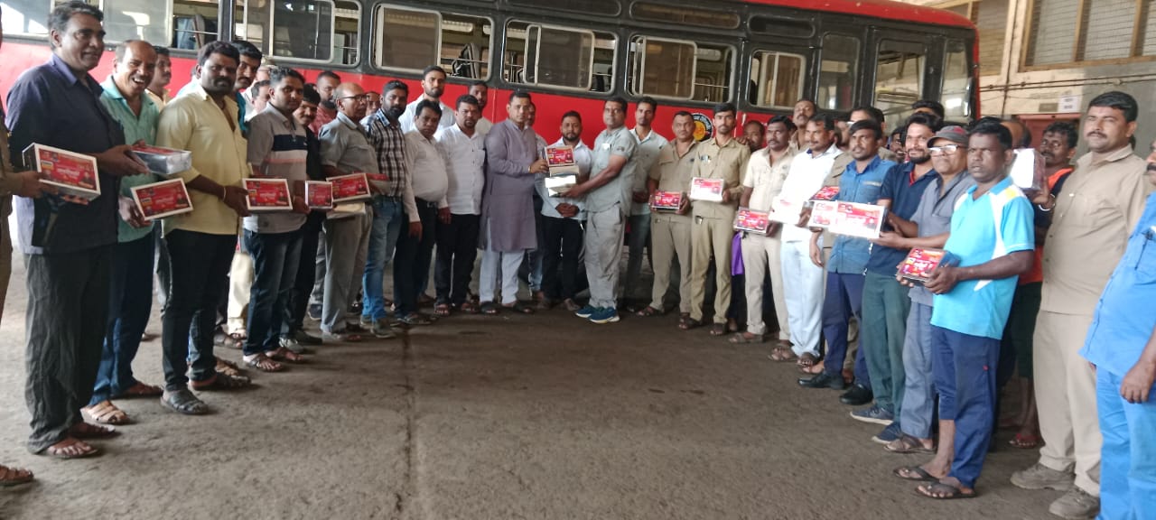 आगाराचे सहाय्यक निरीक्षक सुनील पवार यांनी एसटीच्या ३५ वर्षाच्या सेवेमध्ये असा कार्यक्रम कधी झाला नाही, तो आज मनसेच्या माध्यमातून होत आहे. मनसे कडून कर्मचाऱ्यांना शाबासकीची थाप व कर्मचारी बद्दल असलेले प्रेम हे आज व्यक्त होत आहे. त्यामुळे मनसेचे आभार मानावे इतके थोडे आहेत. Distribution of snacks to ST employees by MNS