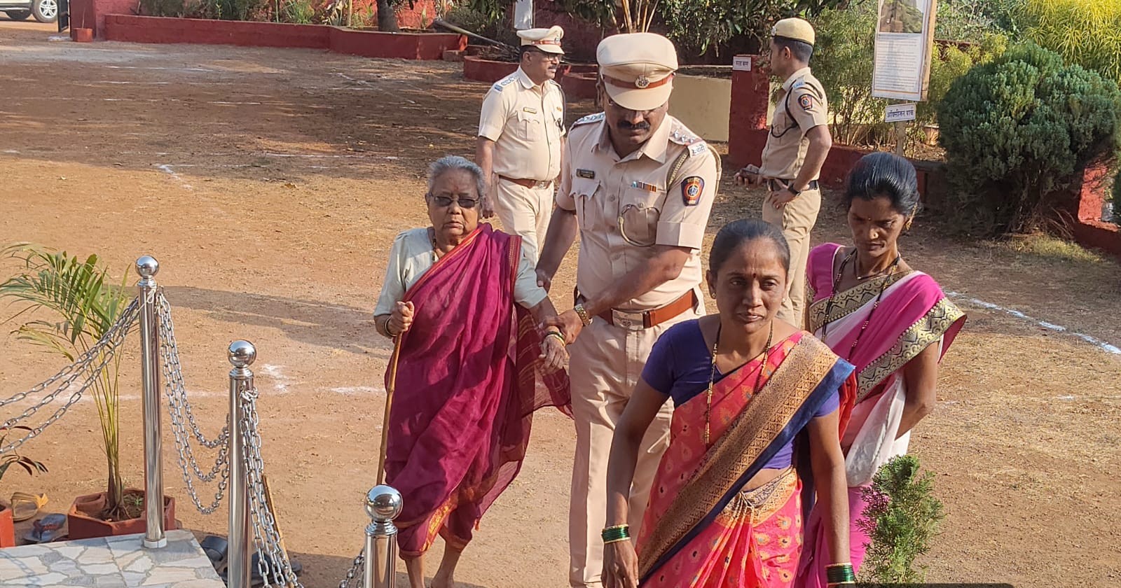 पोलीस निरीक्षक सचिन सावंत वृद्ध मतदाराला मतदान केंद्रावर घेऊन जाताना