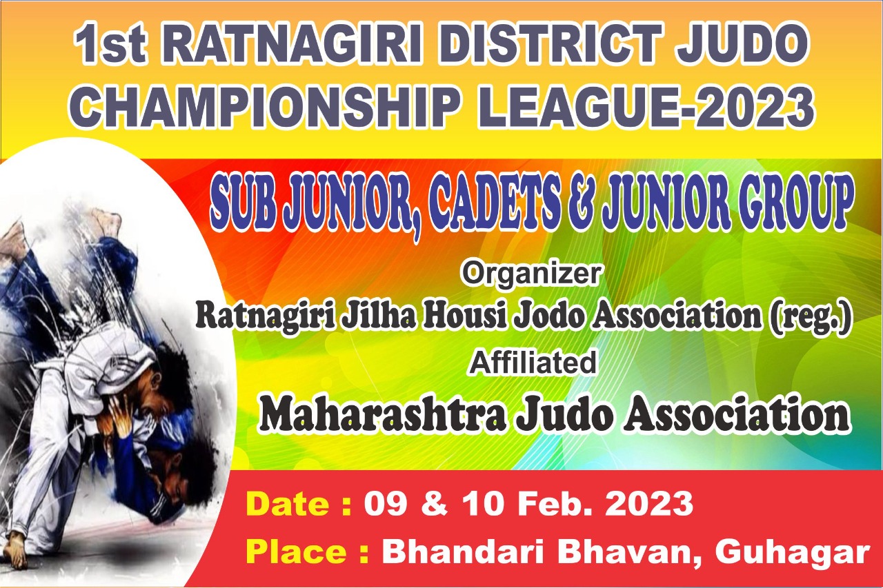 गुहागर, ता. 07 : रत्नागिरी जिल्हा हौशी जुदो संघटनेच्या वतीने पहिली रत्नागिरी जिल्हा जुदो चॅपियनशिप लिग स्पर्धा आयोजित करण्यात आली आहे. दि 9 व 10 फेब्रुवारी 2023 रोजी गुहागर येथील कै इंदिरा वासुदेव शेटे सभागृह, भंडारी भवन येथे या स्पर्धा घेण्यात येणार आहेत. या स्पर्धेत जिल्हा भरातून 14 संघ सहभागी होणार असून एकूण 412 खेळाडूंनी या स्पर्धेत सहभाग नोंदविला आहे. दि 9 फेब्रुवारी रोजी स. 11 वा मान्यवरांच्या उपस्थितीत स्पधेचे उद्घाटन होणार आहे, अशी माहिती जिल्हा अध्यक्ष निलेश गोयथळे यांनी दिली. District Judo Championship League 2023