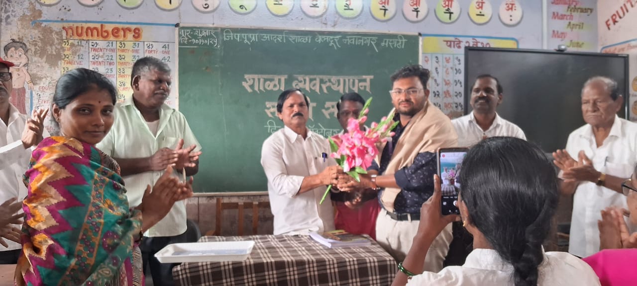 शिक्षण तज्ञ सदस्य श्री शंकर कोळथरकर, युवा नेते मनोज पावसकर, ग्रामपंचायत सदस्य मारुती रोहीलकर, ग्राम. सदस्या प्राजक्ता जांभरकर, उपाध्यक्ष रवींद्र जांभरकर, मुख्याध्यापक मनोज पाटील, पदवीधर शिक्षक निलेश पाटील, शिक्षक वृंद धन्वंतरी मोरे, सुषमा गायकवाड, अफसाना मुल्ला, आरोग्य सेविका किल्लेकर, आशा सेविका सोनाली वनकर, शाळा व्यवस्थापन समिती सदस्य व पालक बहुसंख्येने उपस्थित होते. कार्यक्रमाचे सूत्रसंचालन धन्वंतरी मोरे तर आभार प्रदर्शन अफसाना मुल्ला यांनी केले. Dr. Kumbhar felicitated by Veldur Nawanagar