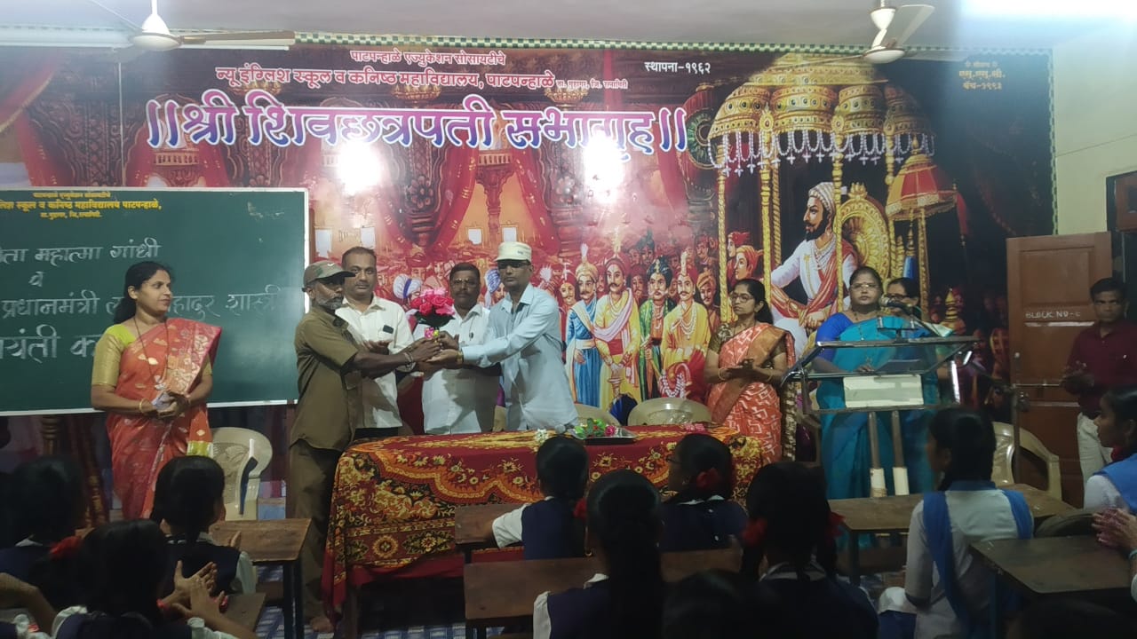 गुहागर, ता. 06 : तालुक्यातील न्यू इंग्लिश स्कूल व कनिष्ठ महाविद्यालय पाटपन्हाळे विद्यालयात राष्ट्रपिता महात्मा गांधी व माजी पंतप्रधान लालबहादूर शास्त्री यांचा जयंती साजरी करण्यात आली. हा कार्यक्रम प्राचार्य श्री. व्ही.डी.पाटील यांच्या अध्यक्षतेखाली छत्रपती शिवाजी महाराज सभागृहात नुकताच संपन्न झाला. जयंतीनिमित्त विद्यालयामध्ये माध्यमिक विभागातर्फे निबंध स्पर्धा घेण्यात आली होती. Gandhi and Shastri Jayanti at Patpanhale School