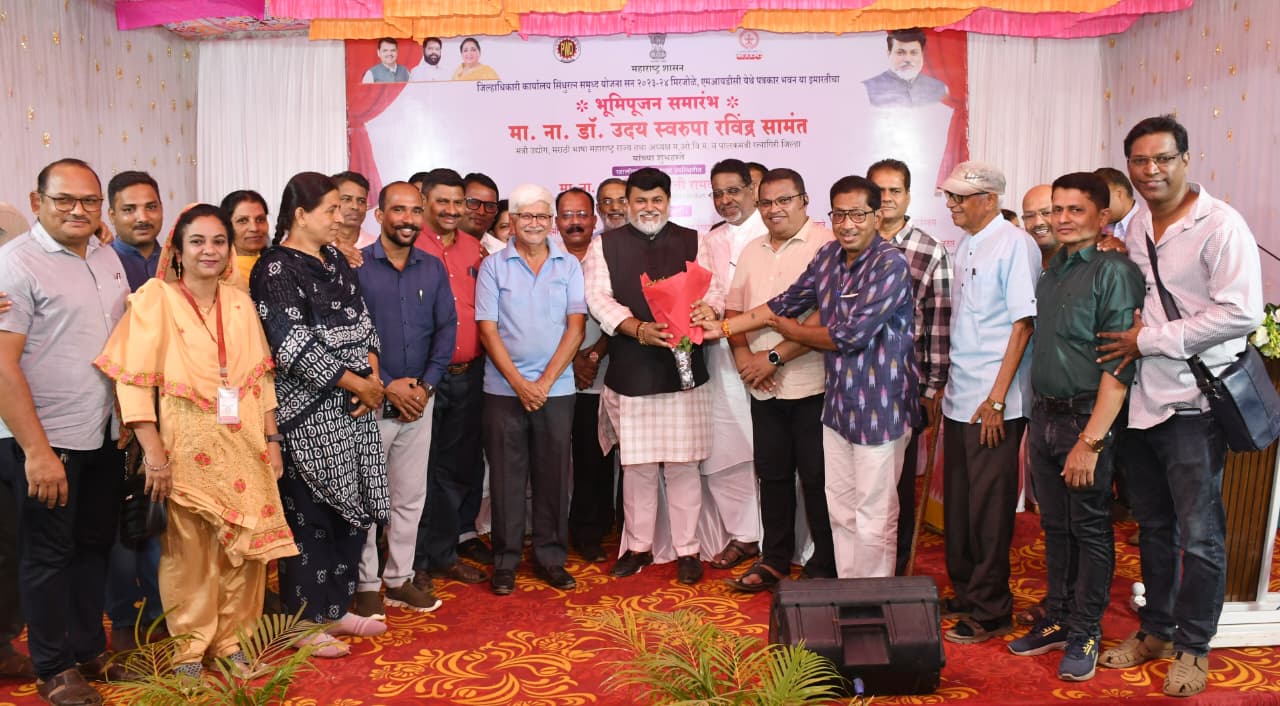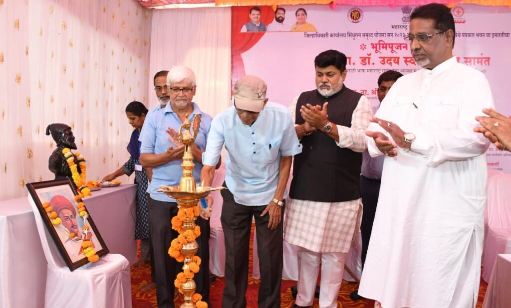 पालकमंत्री डॉ. सामंत मार्गदर्शन करताना म्हणाले, उच्च व तंत्र शिक्षण मंत्री असताना एलफिन्स्टन कॉलेजला आचार्य बाळशास्त्री जांभेकर यांचे तैलचित्र 15 दिवसात लावले. मराठी बरोबरच हिंदी पत्रकारतेची सुरुवात देखील कोकणातून झालेली आहे. मला मनापासून समाधान आहे की जे स्वप्न पत्रकारांसाठी बघितले ते पूर्ण करण्याची संधी माझ्या सारख्या कार्यकर्त्याला मिळाली. त्याला जमीनदेखील देण्याची संधी मिळाली. 1 कोटी 36 लाख रुपये खर्च करुन ही इमारत आपण उभी करत आहोत. यामध्ये अभ्यासिका, ग्रंथालय, निवासी सोय, सभागृह आहे. या पत्रकार भवनमधून आयएएस, आयपीएस अधिकारी घडविण्यासाठी स्पर्धा परीक्षा मार्गदर्शन केंद्र सुरु करावे, त्यासाठी आवश्यक तो निधी दिला जाईल. Groundbreaking ceremony of the Journalists’ Building
