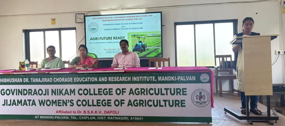गुहागर, ता. 19 : कृषीभूषण डॉ. तानाजीराव चोरगे शिक्षण व संशोधन संस्था संचालित गोविंदरावजी निकम कृषी महाविद्यालय व जिजामाता महिला कृषी महाविद्यालय, मांडकी-पालवण यांच्या संयुक्त विद्यमाने दिनांक 18 नोव्हेंबर 2025 रोजी महाविद्यालयात विद्यार्थ्यांमध्ये व्यावहारिक कौशल्ये आणि कॉर्पोरेट जगतासाठी तयारी करण्याची क्षमता विकसित करण्यासाठी” मार्गदर्शन कार्यक्रम पार पडला. Guidance program at Mandki-Palvan Agricultural College
