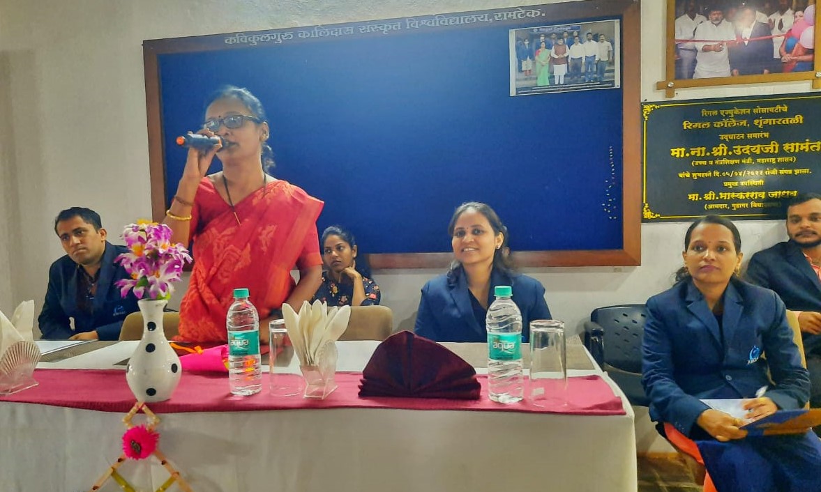 गुहागर, ता. 09 : शृंगारतळी येथील रिगल कॉलेजमध्ये विद्यार्थ्यांसाठी काव्यवाचन व कथाकथन विषयावर प्रा. सौ. मनाली बावधनकर यांचे मार्गदर्शनपर व्याख्यानाचे आयोजन करण्यात आले होते. यावेळी रिगल कॉलेजच्या प्राचार्या सौ. रेश्मा मोरे यांनी त्यांचे पुष्पगुच्छ व नूतन वर्षाचे शुभेच्छा कार्ड देऊन स्वागत केले. Guided by Bavdhankar at Regal College