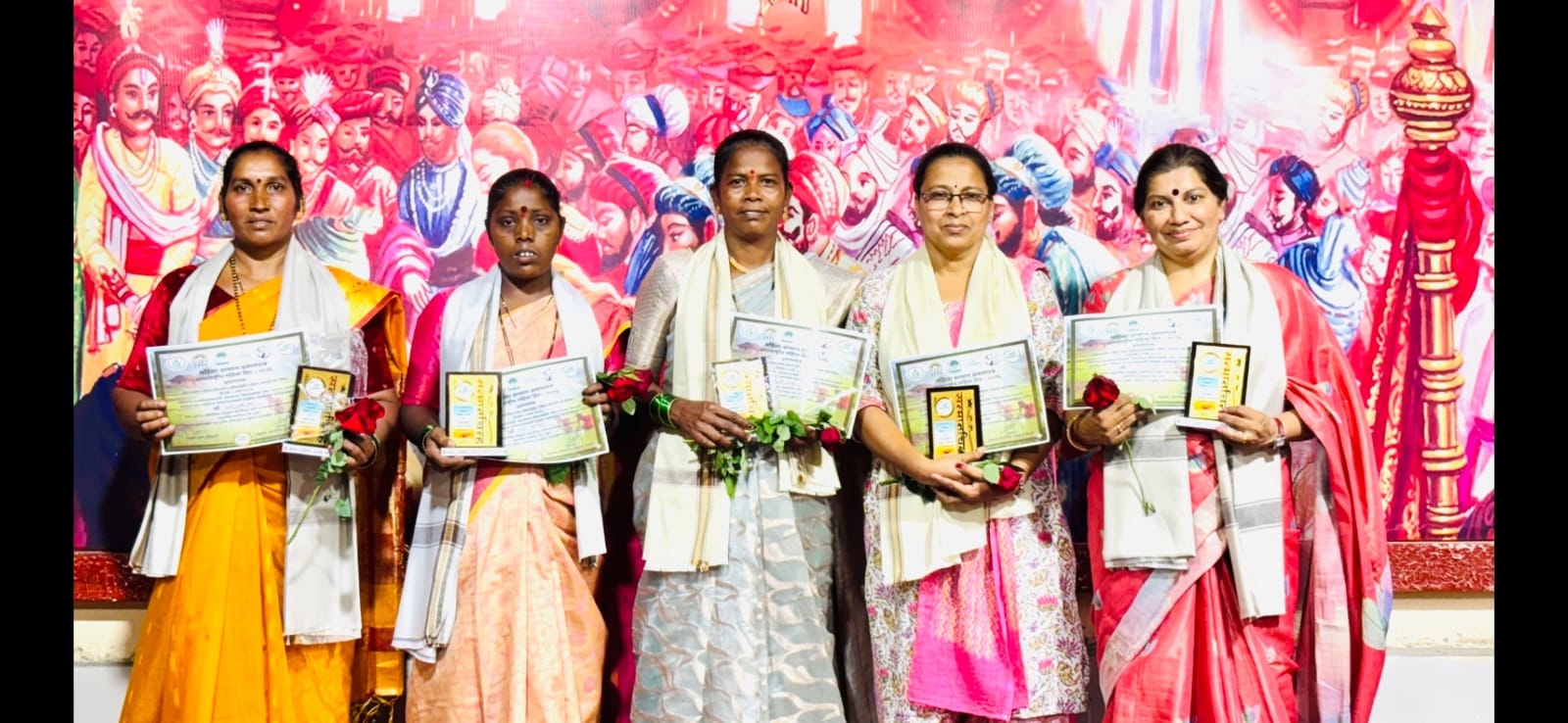 यावेळी ऑरगॅनिक प्रोड्युसर कंपनी मार्फत कृषी क्षेत्रात व कंपनी सहकार्यात उल्लेखनीय कामगिरी केली अशा पाच महिलांचा गौरव करण्यात आला. यामध्ये धनश्री धनश्याम मांजरेकर, नीता अनंत दाबके, नम्रता सुनील भेकरे, गौरी शिरीष खरे, संजना संतोष खेतले यांचा समावेश होता. Honoring women working in agriculture