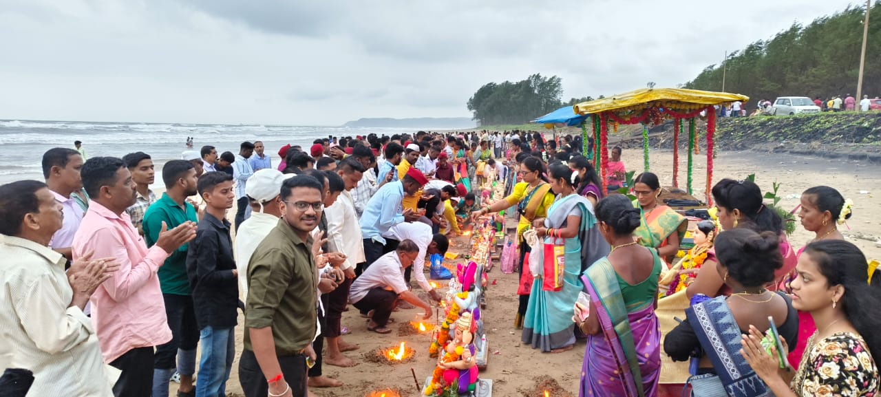 गुहागर तालुक्यात दरवर्षी गणेशोत्सव सण मोठ्या उत्साहाने साजरा केला जातो. गेले पाच दिवस तालुक्यातील प्रत्येक घरात गणरायाच्या मूर्तीची प्रतिष्ठापना करण्यात आली होती. त्यामुळे तालुक्यात गेली काही दिवस भजन, जाकडी नृत्य, महिलांचे नाच व अन्य कार्यक्रमाने वातावरण भक्तीमय झाले होते. पाच दिवसांच्या गणपतींचे व गौराईचे आज सातव्या दिवशी गुहागर खालचापाट, शहरासह असगोली, वरचापाट बाग, आरे, वेलदूर, अंजनवेल, धोपावे, पालशेत, वेळणेश्वर, साखरी आगर, नरवण, तवसाळ या समुद्र किनाऱ्यावर तर कोतळूक, गिमवी, आबलोली, तळवली, वडद, देवघर, झोंबडी याठिकाणी नागरिकांनी नद्या नाल्यामध्ये बाप्पाचे टाळ मृदुंगाच्या गजरात, तर काहींनी गणपती बाप्पा मोरया…जयघोष करत विसर्जन केले. तालुक्यात काहींनी साउंड सिस्टीम लावून लाडक्या बाप्पाची मिरवणूक काढली. Immersion of Gauri Ganpati idol in Guhagar