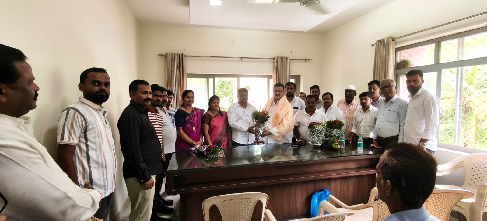 स्वयंसहाय्यता बचत गट मिटिंग, शेतकरी मेळावा, बचत गट मेळावा, ग्रामसभा यासारखे इतर कोणतेही उपक्रम अथवा मिटिंग सध्याच्या ग्रामपंचायत इमारतीमध्ये घेता येत नाहीत. त्यामुळे ग्रामपंचायत कार्यालयासाठी नवीन जागाही उपलब्ध नाही. अशा सर्व अडचणीमुळे ग्रामस्थांची मोठ्या प्रमाणात गैरसोय होत आहे. सदर इमारतीचे निर्लेखन झाले असून सद्यस्थितीत ग्रामपंचायत कार्यालय भाड्याच्या खोलीमध्ये स्थलांतरीत करत आहोत. तरी वरील सर्व बाबींचा विचार करुन ग्रामपंचायत कार्यालय नवीन इमारत बांधून मिळावी, अशी मागणी ग्रामस्थांच्या वतीने करण्यात आली आहे. Janvale villagers submit a statement to MLA Jadhav