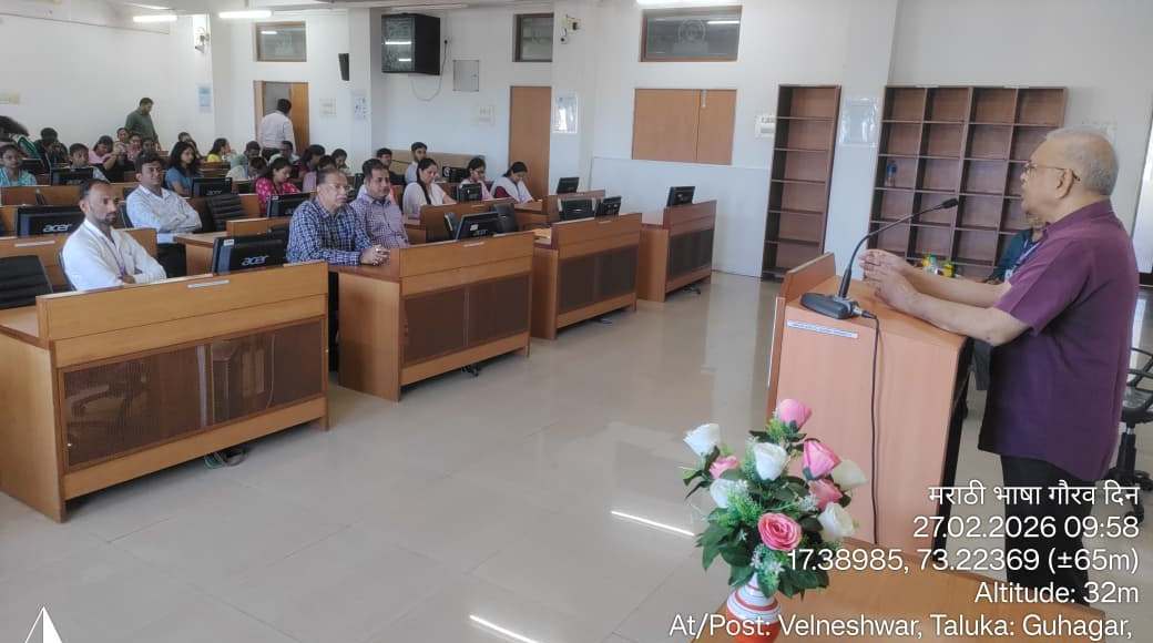 प्रमुख अतिथी श्री. नरेंद्र गोळे यांनी “मराठी भाषेत तांत्रिक शब्दांचा वापर” या विषयावर अत्यंत अभ्यासपूर्ण व प्रेरणादायी मार्गदर्शन केले. दैनंदिन व्यवहारात आपण सर्रास इंग्रजी शब्दांचा वापर करतो; मात्र त्या शब्दांना समर्थ मराठी प्रतिशब्द उपलब्ध असतात, याकडे त्यांनी लक्ष वेधले. त्यांनी स्वतः संशोधनपूर्वक अनेक मराठी प्रतिशब्द शोधून काढले असून ते आपल्या ३६ अनुवादित ग्रंथांमधून वापरात आणले आहेत. तसेच हे प्रतिशब्द आपल्या संकेतस्थळावरील ब्लॉगद्वारे सर्वांसाठी उपलब्ध करून दिले असल्याचे त्यांनी नमूद केले. तांत्रिक शिक्षण मातृभाषेतून दिल्यास समज अधिक सखोल होते, असा ठाम विश्वास त्यांनी व्यक्त केला. Marathi Language Pride Day at Velneshwar College
