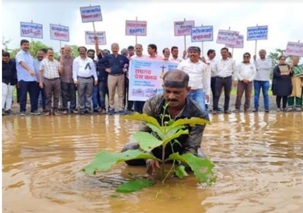 जिल्हाध्यक्ष मनोज खांबे यांनी चिखलयुक्त खडुयात उतरुन नोंदवला निषेध !