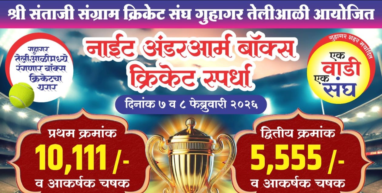 गुहागर, ता. 07 : येथील श्री संताजी संग्राम क्रिकेट संघ तेलीआळी आयोजित दि. 7 व 8 फेब्रुवारी रोजी नाईट अंडरआर्म बॉक्स क्रिकेट स्पर्धेला आज मोठ्या दिमाखात प्रारंभ होणार आहे. या स्पर्धा कै. विठ्ठल रहाटे क्रीडानगरी, श्री संताजी जगनाडे मंदिर तेलीआळी येथे खेळविण्यात येणार आहेत. Night cricket tournament in Guhagar