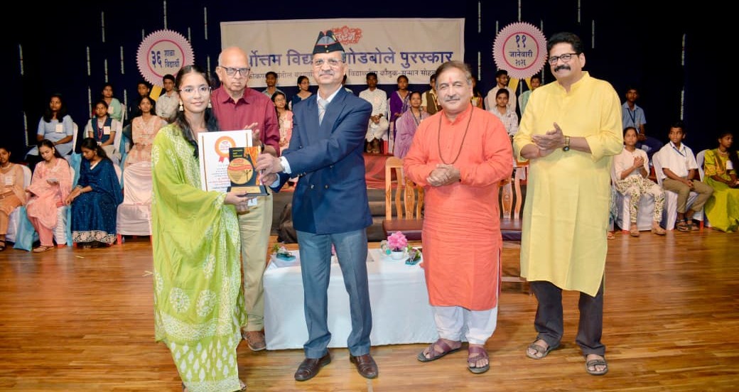 गुहागर, ता. 13 : ‘चतुरंग प्रतिष्ठान’ तर्फे दिल्या जाणाऱ्या सर्वोत्तम विद्यार्थी गोडबोले पुरस्कारने कु पद्मश्री प्रसन्ना वैद्यला सन्मानित करण्यात आले. कोकणातील बहुपैलू विद्यार्थ्यांचा जाहीर गौरव करणारा, विद्यार्थीप्रिय सन्मान म्हणजे गोडबोले पुरस्कार. दिनांक ११ जानेवारी २०२६ रोजी सकाळी १० वाजता इंदिरा सांस्कृतिक केंद्र चिपळूण येथे सदर कार्यक्रम आयोजित करण्यात आला होता. Padmashri Vaidya for best student Godbole Award