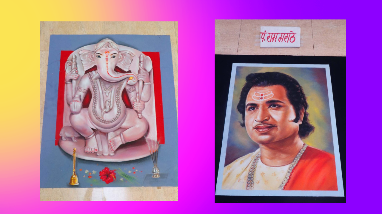 या प्रदर्शनात श्री गणपती, श्री देव गणपती (उफराटा), विक्रम गोखले, पं. राम मराठे, विद्याधर गोखले, पं.वसंतराव देशपांडे, बालगंधर्व अशा निरनिराळ्या रांगोळी प्रदर्शनात काढण्यात आलेल्या आहेत. या उद्घाटनासाठी आय डी बी आय बँक मॅनेजर सौ. दीप्ती मुंजे, देवस्थान अध्यक्ष मंदार आठवले, केदार परसुरे, सौ ज्योती परचुरे, सौ प्राची देवस्थळी, प्रकाश देवस्थळी, सतीश देवस्थळी, चिन्मय सावरकर, उदय आठवले आदी आधी मान्यवर उपस्थित होते. Rangoli Exhibition at Guhagar