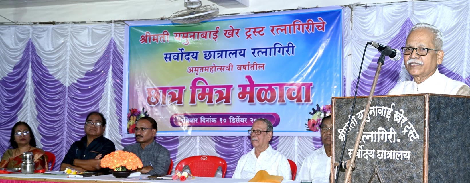 प्रास्ताविकामध्ये रघुवीर शेलार यांनी सांगितले की, आजचा छात्र मित्र मेळावा आयुष्याच्या शिदोरीत भर घालणारा आहे. सर्वोदय छात्रालयाचे आतापर्यंत एक हजार माजी विद्यार्थी आहेत. छात्रालयाला ७५ वर्षे होत आहेत. यानिमित्त माजी विद्यार्थ्यांनी संस्थेकरिता ५ टक्के योगदान द्यावे. २८ एप्रिलला मोठा कार्यक्रम होणार आहे. दयानंद परवडी यांनी स्वागत केले. सूत्रसंचालन उपाध्यक्षा जयश्री बर्वे यांनी केले. शिवप्रकाश चौघुले यांनी आभार मानले. Ratnagiri student friends meeting