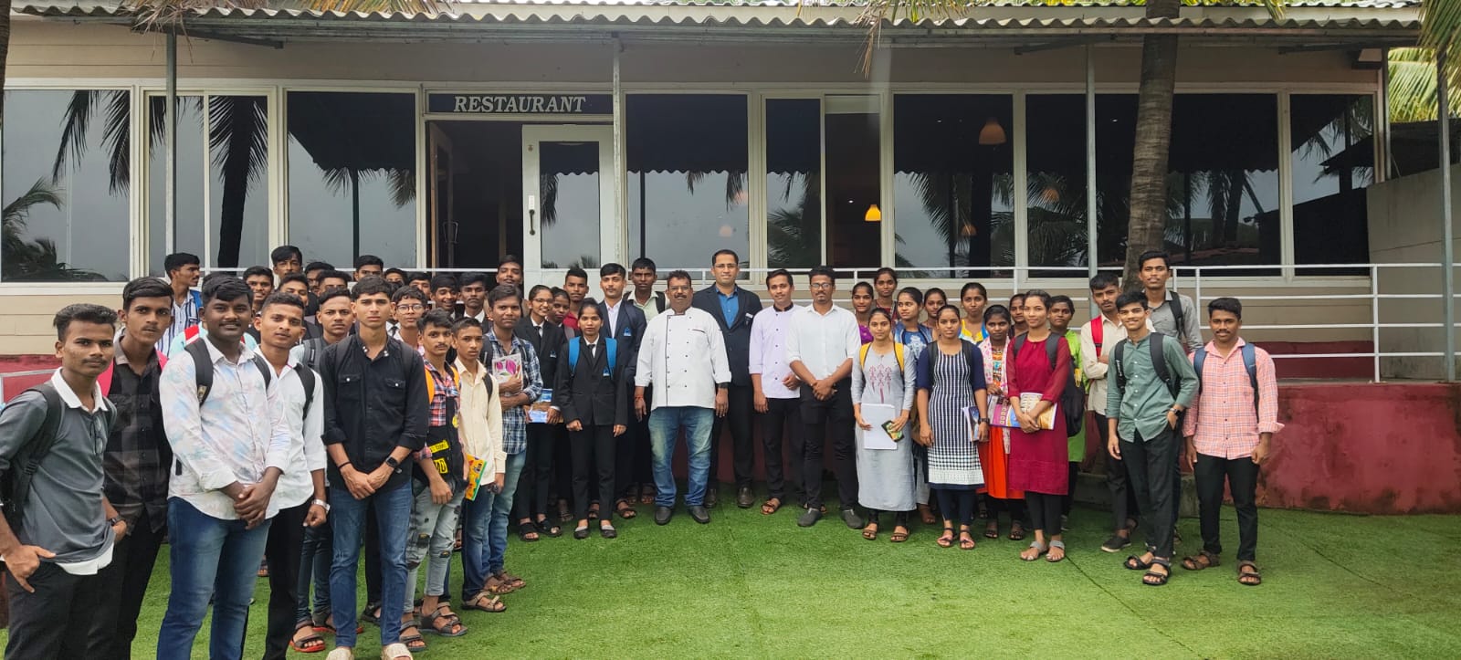 गुहागर, ता. 08 : रिगल कॉलेज, शृंगारतळी येथील हॉटेल मँनेजमेंटच्या विद्यार्थ्यांनी व प्रा. शैलेश घाणेकर, प्रा. वृणाल बेर्डे यांच्या मार्गदर्शनाखाली असगोली येथील अत्याधुनिक वूड्स रिसोर्टला प्रत्यक्ष भेट दिली. वूड्स रिसोर्टचे शेफ श्री. अमेय कानिटकर यांनी संपूर्ण रिसेप्शन एरिया तसेच टेरिफ कार्डची माहिती दिली. Regal College’s visit to Woods Resort