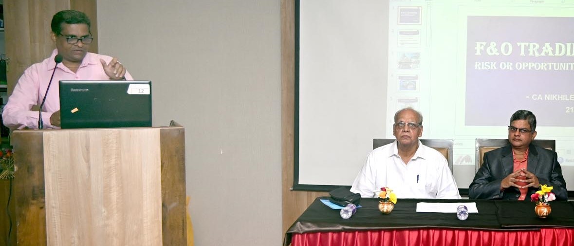 ठाण्याचे प्रसिध्द शेअर मार्केटतज्ञ सीए निखिलेश सोमण यांनी फ्युचर आणि ऑप्शन जोखीमसंबंधी, स्टॉक मार्केटमधील ट्रेडिंग करताना घ्यावयाची काळजी आणि गुंतवणुकदारांची मानसिकता या विषयावर मार्गदर्शन केले. विविध उदाहरणे देत त्यांनी सुरेख मार्गदर्शन केले. दुसऱ्या सत्रामध्ये रत्नागिरी येथील सीए अनुप शहा यांनी स्टॉक मार्केटवरील विविध प्रकारचे व्यवहार, क्रिप्टो करंन्सीबाबतचे व्यवहार, इंजल टॅक्स, शेअर बायबॅक, बोनस या विषयांवर आयकरमधील विविध तरतुदीवर अभ्यासपूर्ण विवेचन केले.