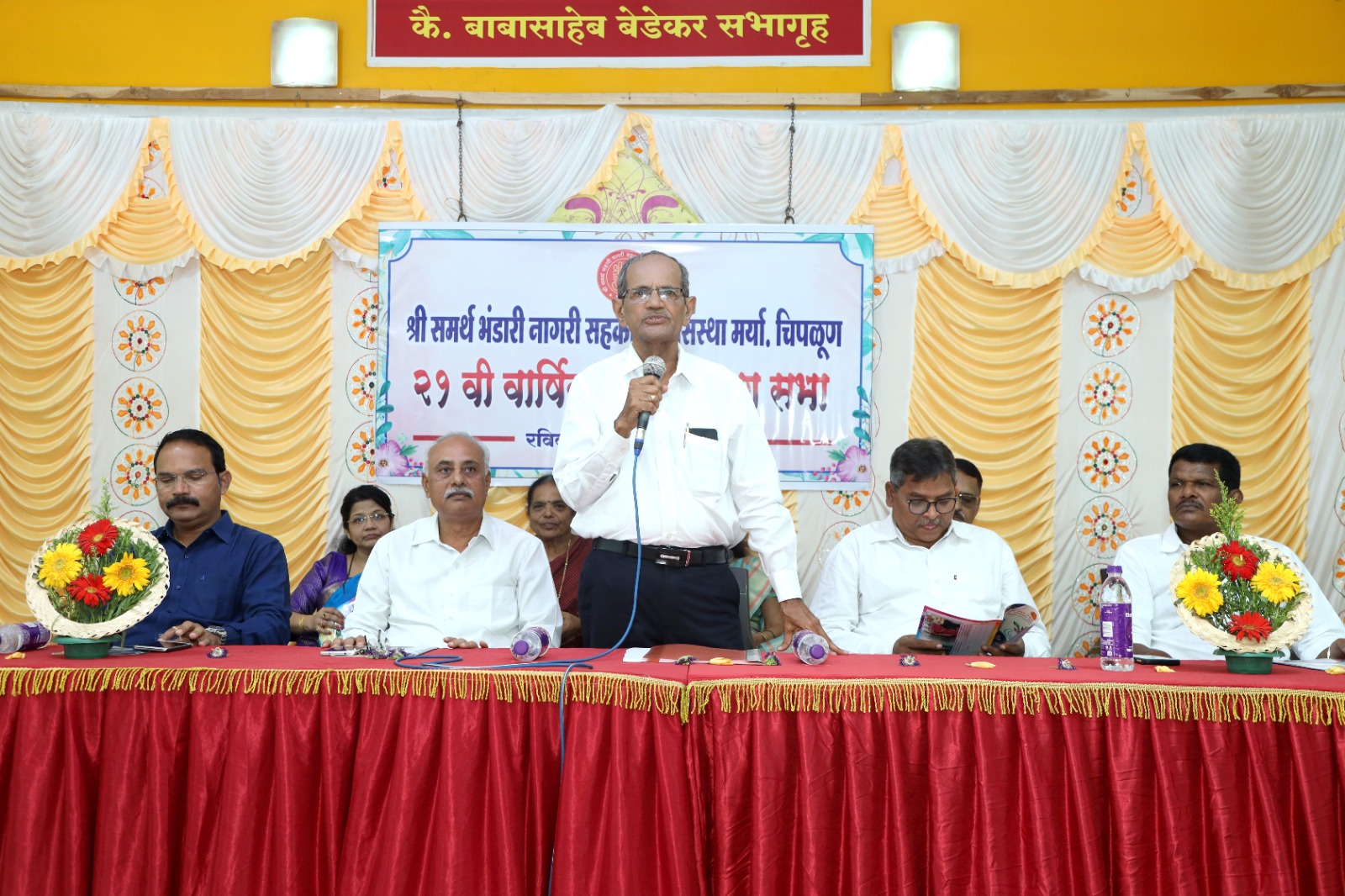 गुहागर, ता. 30 :  श्री समर्थ भंडारी नागरी सहकारी पतसंस्था मर्या. चिपळूण या संस्थेची २१ वी वार्षिक सर्वसाधारण सभा उत्साहात संपन्न झाली. यावेळी संस्थेचे असंख्य सभासद उपस्थित होते. Shri Samarth Bhandari Credit Institution’s meeting concluded
