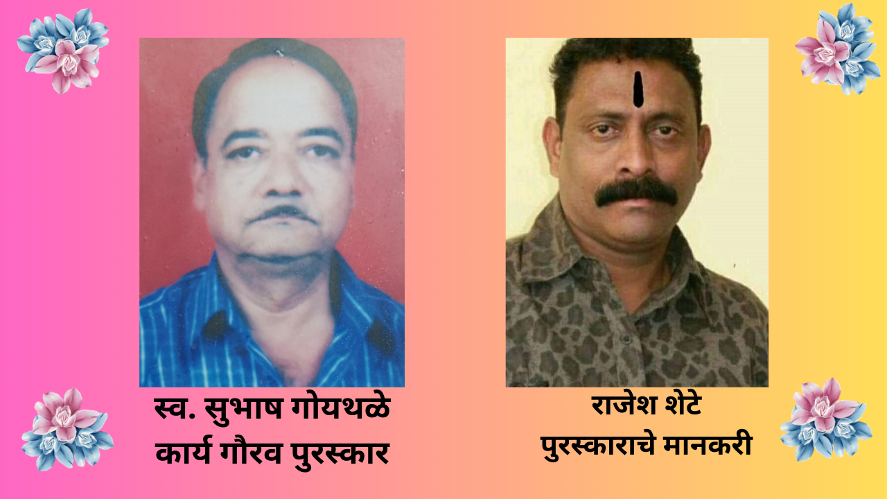 या सोहळ्यात मनसेचे माजी गुहागर तालुका प्रमुख राजेश शेटे यांनी कोरोनाच्या दुसऱ्या लाटेत ग्रामीण रुग्णालय गुहागर येथील कोरोना कक्षात उपचार घेणाऱ्या रुग्णांना आणि त्यांच्या नातेवाईकांना सलग ३ महिने स्व खर्चाने जेवणाचे डबे उपलब्ध करुन दिले. याशिवाय कोरानाने मृत्यू झालेल्या रुग्णांच्या अंत्यसंस्कारांसाठी गुहागर नगरपंचायतीला जळावू लाकडे उपलब्ध करुन दिली. त्यांच्या या कार्याबद्दल राजेश रमेश शेटे यांना स्व. सुभाष गोयथळे कार्य गौरव पुरस्कार देण्याचे गुहागर तालुका पत्रकार संघाने निश्चित केले आहे. 15 एप्रिल 2023 रोजी जाहीर कार्यक्रमात पुरस्कार देण्यात येणार आहे. Subhash Goythale Award of Journalist Union announced