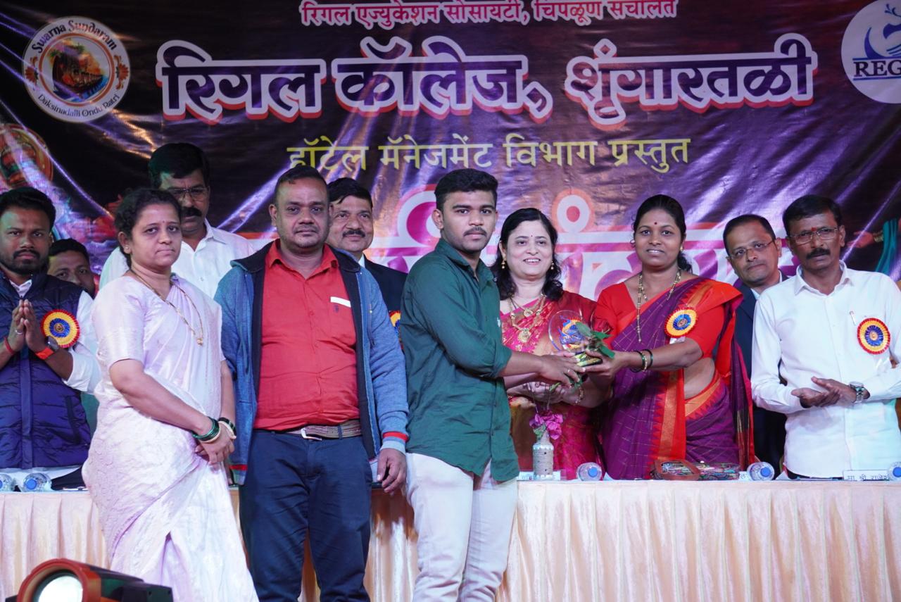 गुहागर, ता. 27 : तालुक्यातील रिगल कॉलेज, शृंगारतळी येथील तृतीय वर्ष हॉटेल मॅनेजमेंट विभाग प्रकल्पाअंतर्गत स्वर्ण सुंदरम थीम डिनर 2025 चे आयोजन करण्यात आले होते. मान्यवरांच्या हस्ते दीपप्रज्वलन व साऊथ इंडियन गेस्ट श्री. मितेश मोहन यांच्या हस्ते व्यंकटेश पूजनाने कार्यक्रमाची सुरुवात करण्यात आली. या कार्यक्रमासाठी उपस्थित असलेल्या पाहुण्यांचा शाल, श्रीफळ, सन्मानचिन्ह व रोपटे देऊन सत्कार करण्यात आला. Swarna Sundaram Theme Dinner at Shringartali