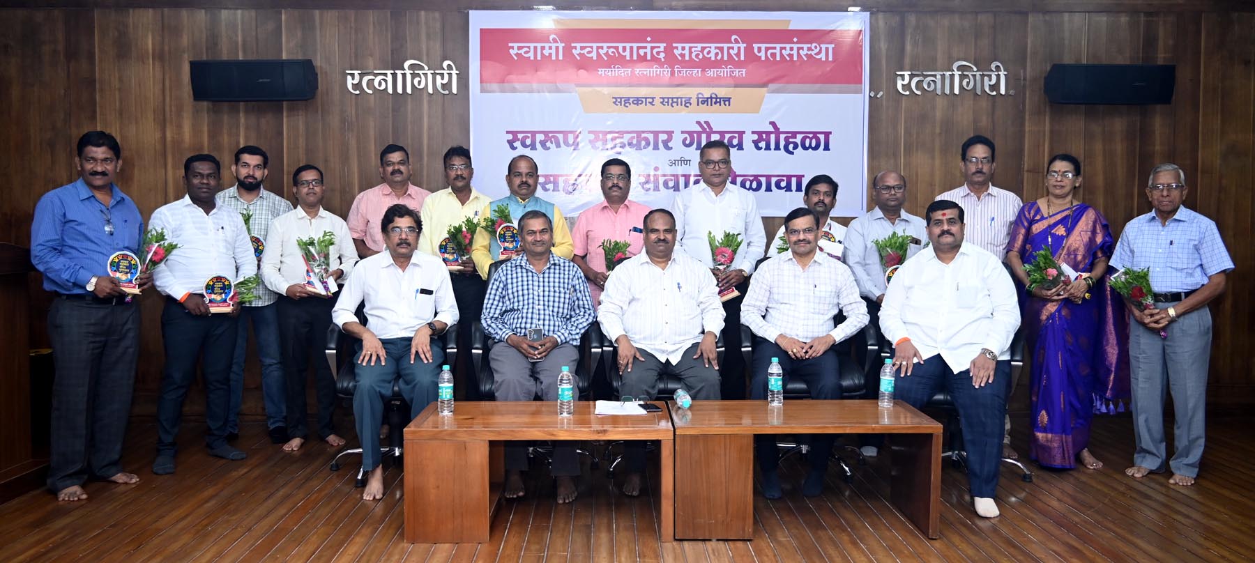 नागरी, ग्रामीण पतसंस्था- चंद्रशेखर रुमडे (लांजा नागरी पतसंस्था), अनिल विले (मुरली मनोहर पतसंस्था), रविंद्र थेराडे (शिववैभव पतसंस्था), रविंद्र मुंढेकर (भैरी भवानी पतसंस्था), कृतिका सुवरे (महिला पतसंस्था), पराग भाटकर (भंडारी हितवर्धक ग्रामीण पतसंस्था). पगारदार पतसंस्था- सुनिल यादव (ग्रामीण डाकसेवक पतसंस्था), दत्ताराम कोकरे (हॉस्पीटल सेवक पतपेढी), नीलेश चिंगळे (किसान बॅंक), संजय चौधरी (एसटी पतसंस्था), संजय बारिंगे (हिवताप निर्मूलन कर्मचारी पतसंस्था). गृहनिर्माण संस्था- अनुप पेंडसे (रुपाजी हाउसिंग सोसायटी), सुधाकर सावंत (पारस प्लाझा सोसायटी), मिलिंद सावंत (घरकुल गृहनिर्माण संस्था), रघुनाथ गोरे (के. अॅंड एन. क्लासिक सोसायटी). Swaroop Samman Award by Swami Swaroopananda Trust