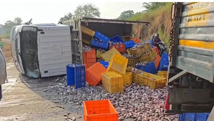 सर्व मासे गुहागर – चिपळूण रस्त्यावर; क्लीनर किरकोळ जखमी