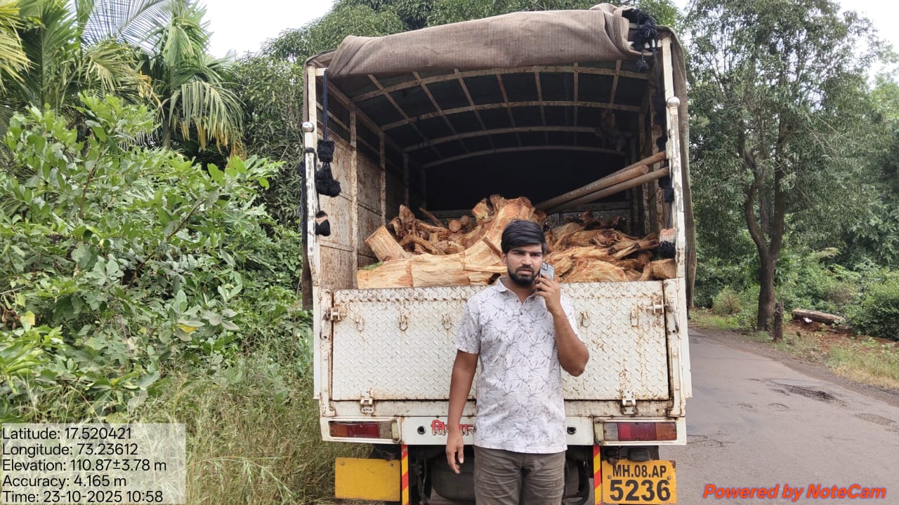 त्यानुसार मौजे. कुंभारवाडी तर्फे पालपेणे येथे जावून सोलीव किटा ४.३२०घ. मी विनापरवाना विनापासी वाहतूक करत असलेला बोलेरो टेम्पो क्र MH08 AP 5236 वाहन लाकुड मालासह जप्त करून चौकशीसाठी ताब्यात घेवून श्रीराम सॉमिल खैर येथील शामजी अर्जुन पटेल रा. चिखली ता. गुहागर यांचे ताब्यात दिले आहे. पुढील तपास चालु असून सदरची कारवाई विभागीय वन अधिकारी, रत्नागिरी (चिपळूण), सहाय्यक वन संरक्षक रत्नागिरी (चिपळूण), परिक्षेत्र वन अधिकारी, चिपळूण यांचे मार्गदर्शना खाली वनपाल गुहागर व वनरक्षक अडूर यांनी केली. दरम्यान तोड करण्यात आलेल्या खैराची किंमत एक लाख रुपये असून वाहतूक करणारी वाहन पाच लाख किमतीचे आहे या दोन्ही वस्तू वनविभागाने आपल्या ताब्यात ठेवल्या आहेत. Theft of Khair wood in Palpen