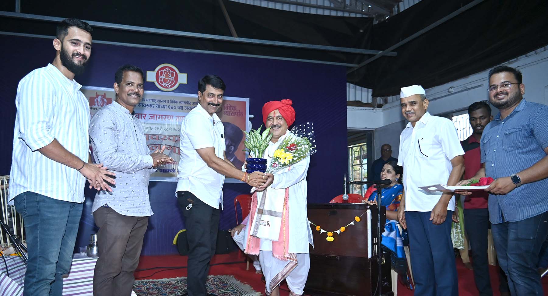 महाराष्ट्र शासन पर्यटन संचालनालय, विवेक व्यासपीठ, पतितपावन मंदिर संस्था आणि श्री भागोजीशेठ कीर ट्रस्ट यांच्या संयुक्त विद्यमाने सावरकर विचार जागरण सप्ताहानिमित्त साळवी स्टॉप येथील ओम साई मित्रमंडळात प्रचंड गर्दीत बुवांचे कीर्तन रंगले. त्यावेळी बुवा बोलत होते. Thought Awakening Festival in Ratnagiri