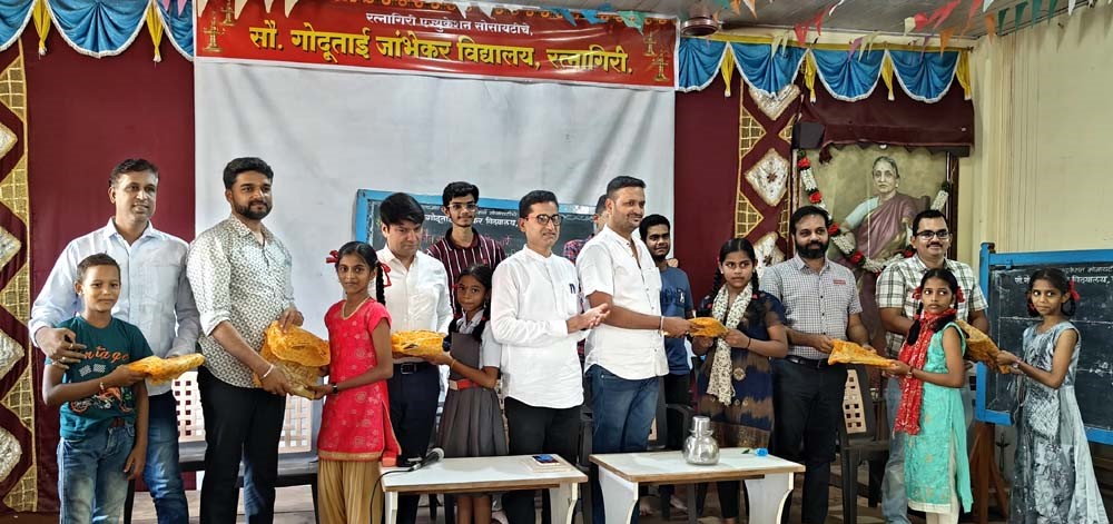 रत्नागिरी, ता. 20 : शहरातील सुमति अर्हम् जैन मंडळातर्फे सौ. गोदुताई जांभेकर विद्यालयात गरजू विद्यार्थ्यांना शालेय गणवेशाचे वितरण करण्यात आले. विविध सामाजिक व शैक्षणिक कार्यात अग्रेसर असणाऱ्या अर्हम् जैन मंडळाने नुकताच हा कार्यक्रम विद्यालयात केला. Uniform distribution by Sumati Arham Jain Mandal