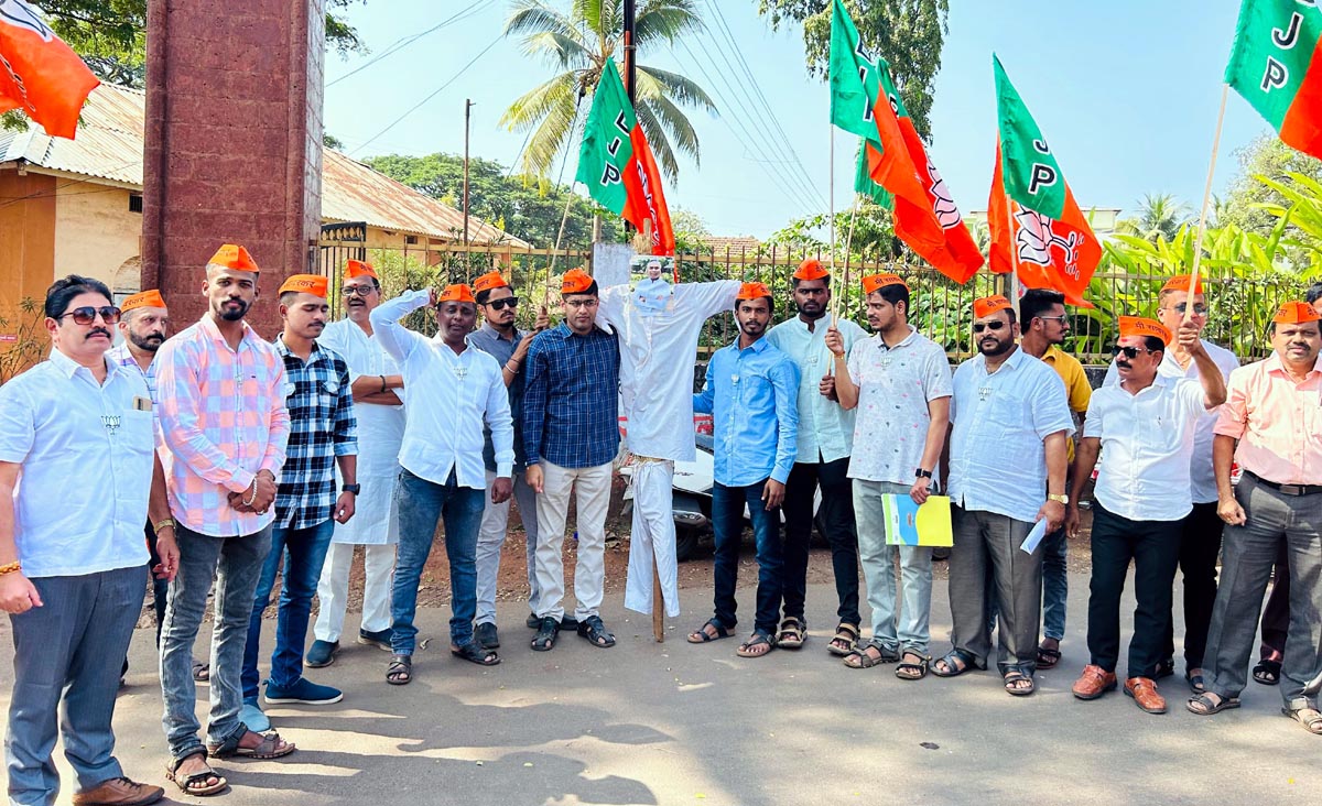 भाजपातर्फे कॉंग्रेसचे नेते खर्गे यांच्या प्रतिकात्मक पुतळ्यास जोडे मारून जाहीर निषेध
